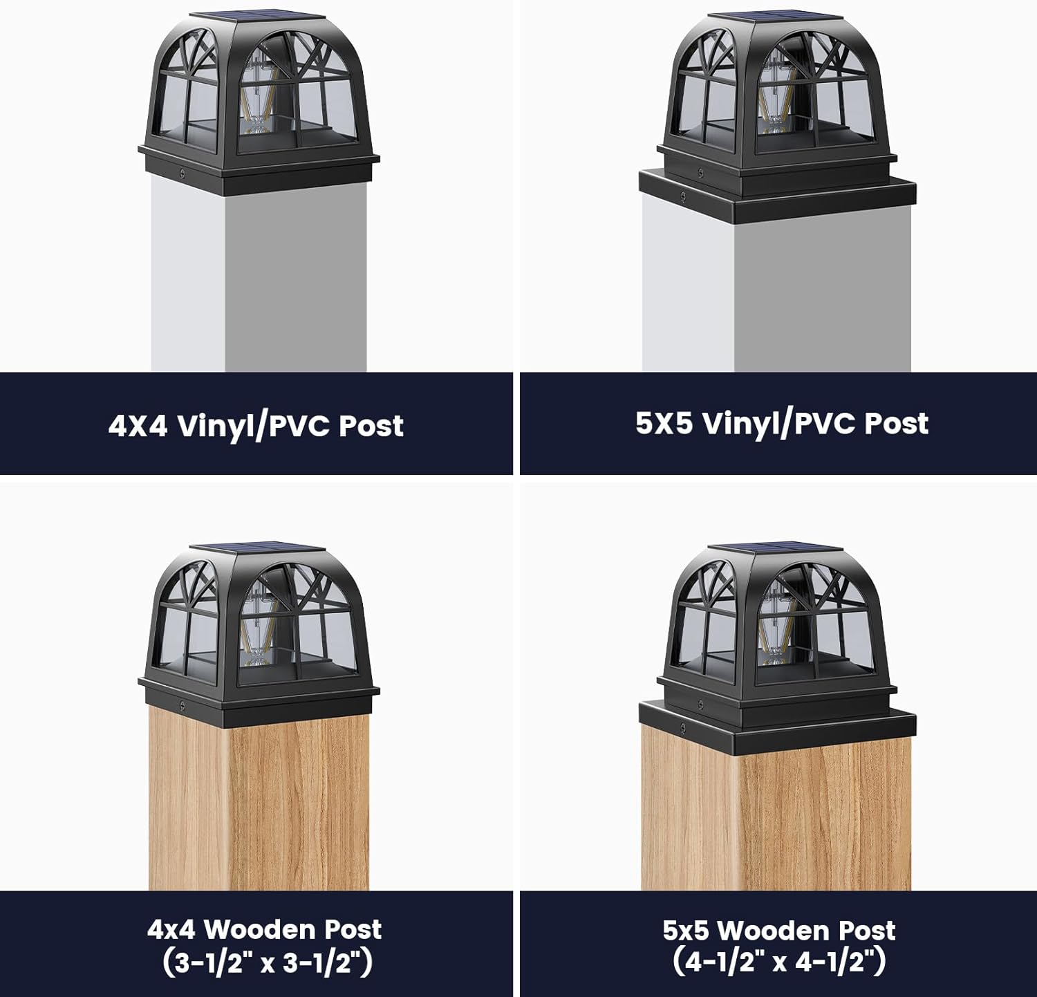 - [Note] Specifically tailored for square 4x4 and 5x5 vinyl posts, as well as 3-1/2" x 3-1/2" and 4-1/2" x 4-1/2" wooden posts. Each purchase is accompanied by a 1-year warranty and a promise of 24-hour customer support.