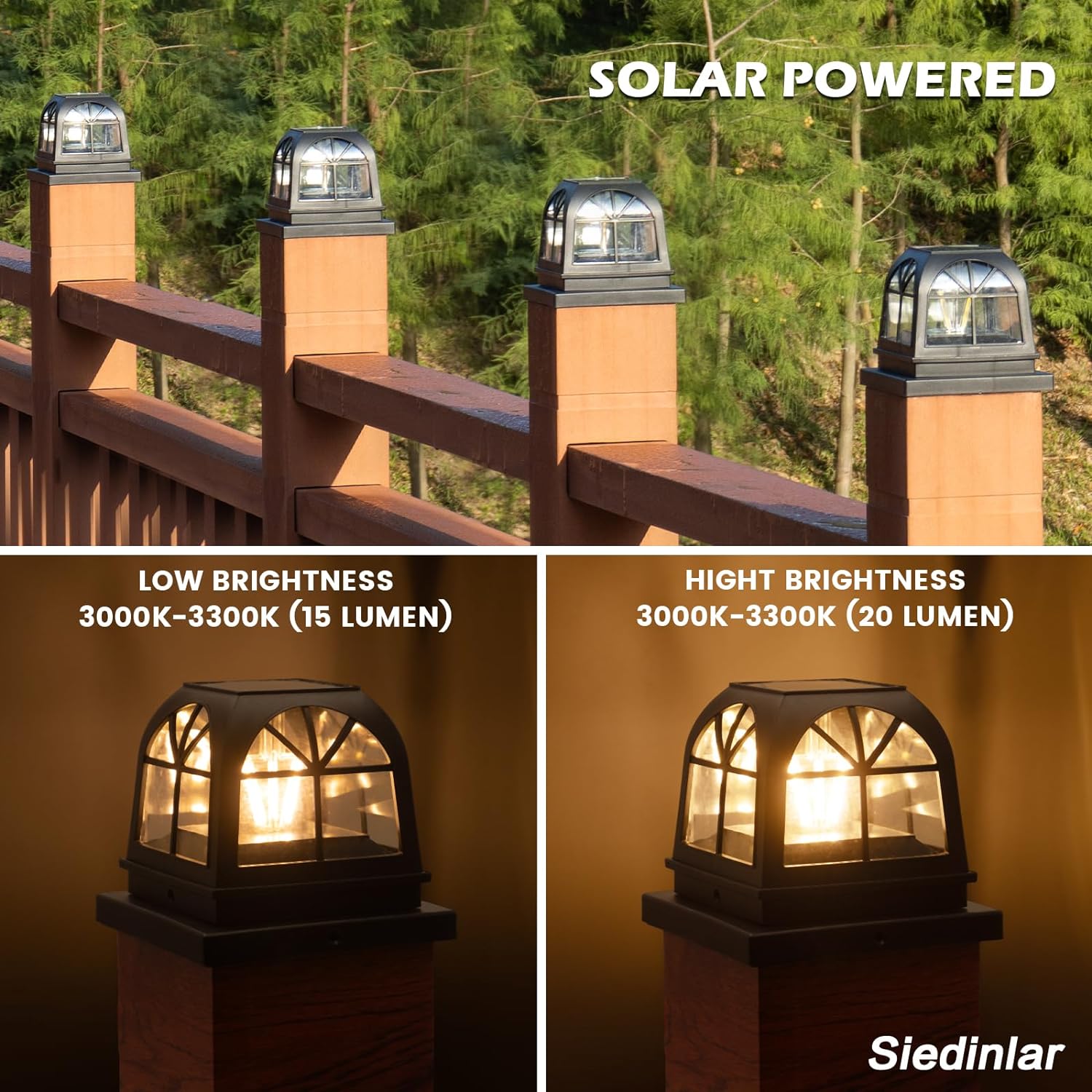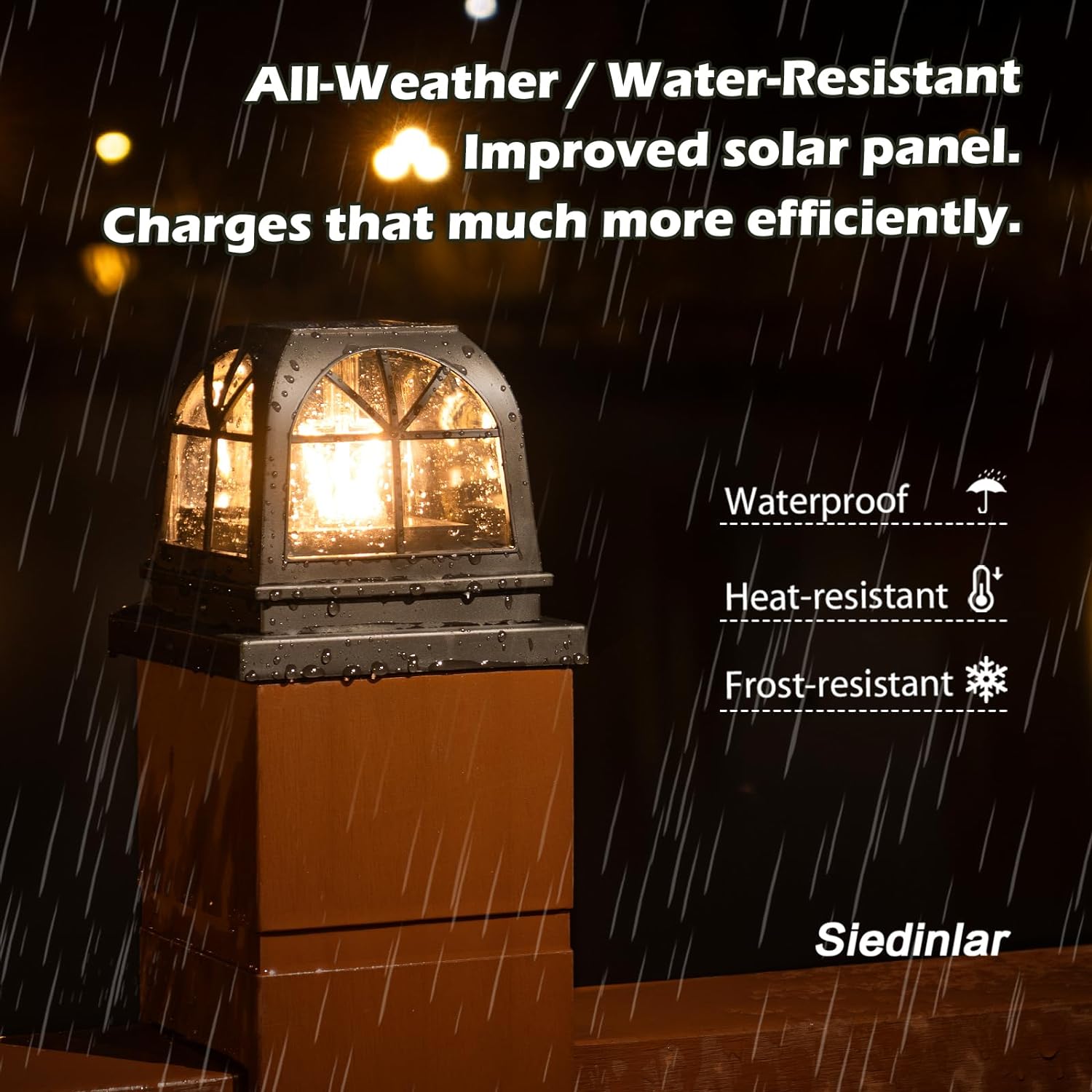 - [IP44 Waterproof] Trust in the resilience of our SIEDiNLAR solar post caps lights. UV-resistant and built to endure, they stand firm against scorching heat, relentless rain, and heavy snow. Moreover, these post caps serve a dual purpose, shielding your posts from the detrimental effects of rain and sunlight, ensuring they remain pristine for longer.